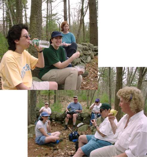 etc. and have a little snack.... and while eating our snack, Diane popped out of the woods. She had gotten there late, but decided it was a great day for a hike and set
